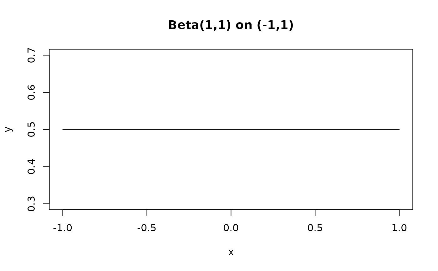 y <- dbeta_box(x, shape1 = 1, shape2 = 1, a = -1, b = 1)