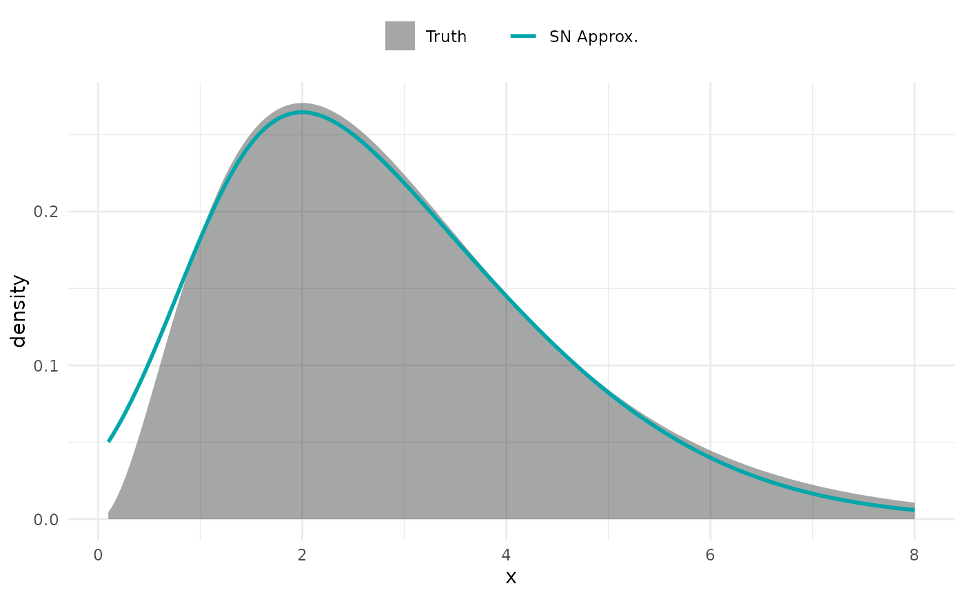 approx = dsnorm(x, xi = res$xi, omega = res$omega, alpha = res$alpha)